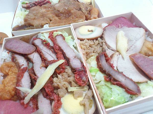 外帶三種便當。排骨便當、燒肉便當和關山便當。當然