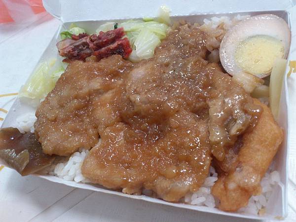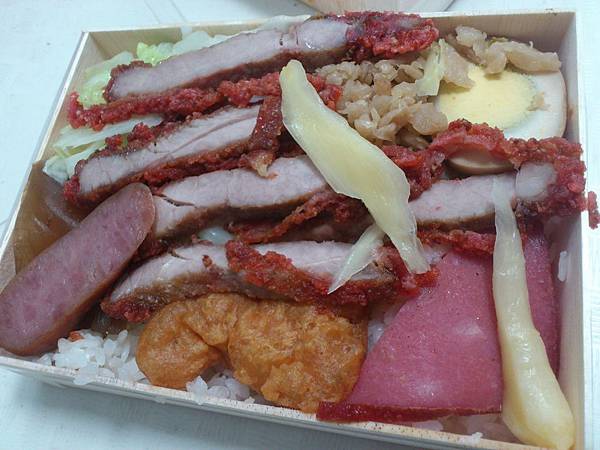 燒肉便當75元。燒肉應該說算是紅糟肉吧。